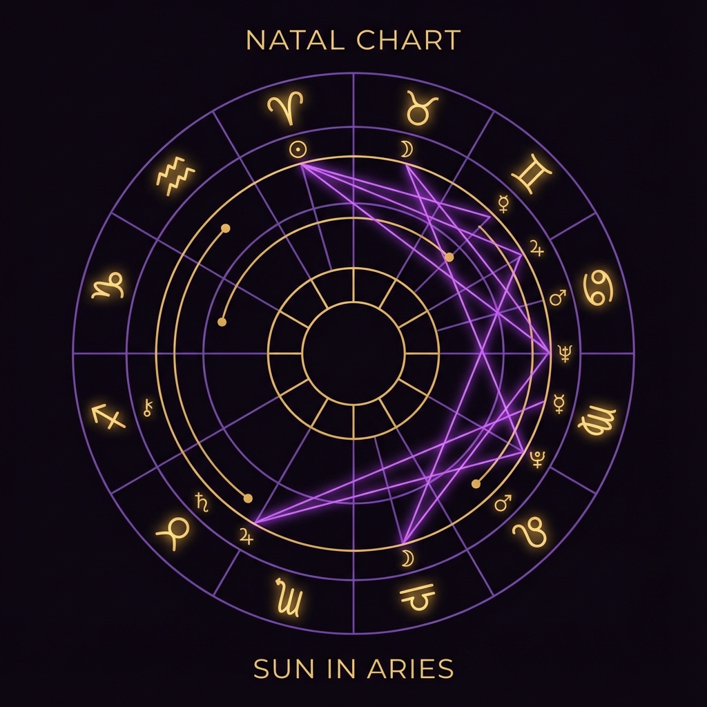 Красные/Черные линии (Квадрат, Оппозиция): Это напряжение. Внутренний конфликт. "Хочу одного, а делаю другое". Это двигатель успеха. Без напряжения нет развития.